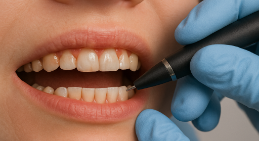 The laser is used to precisely target bacteria and inflamed tissue within gum pockets—without harming healthy gums. This kills harmful bacteria and sterilizes the area.